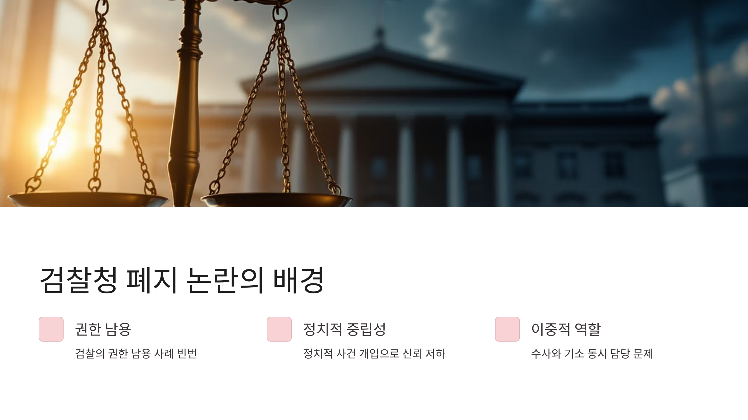 검찰청 폐지 논란은 여러 이유로 촉발되었다. 우선, 검찰의 권한 남용 사례가 빈번하게 발생하면서 시민들의 신뢰가 크게 저하되었다. 특히 정치적 사건에 대한 검찰의 개입이 논란이 되면서 검찰의 정치적 중립성에 대한 의문이 제기되었다. 이외에도 검찰의 내부 비리와 부패 문제, 권력 남용 등 다양한 이슈가 검찰청 폐지 논란의 배경으로 작용하고 있다.