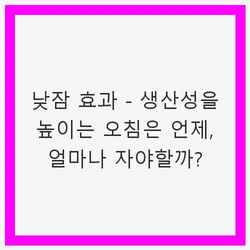👉낮잠 효과 - 생산성을 높이는 오침은 언제, 얼마나 자야할까? 바로가기