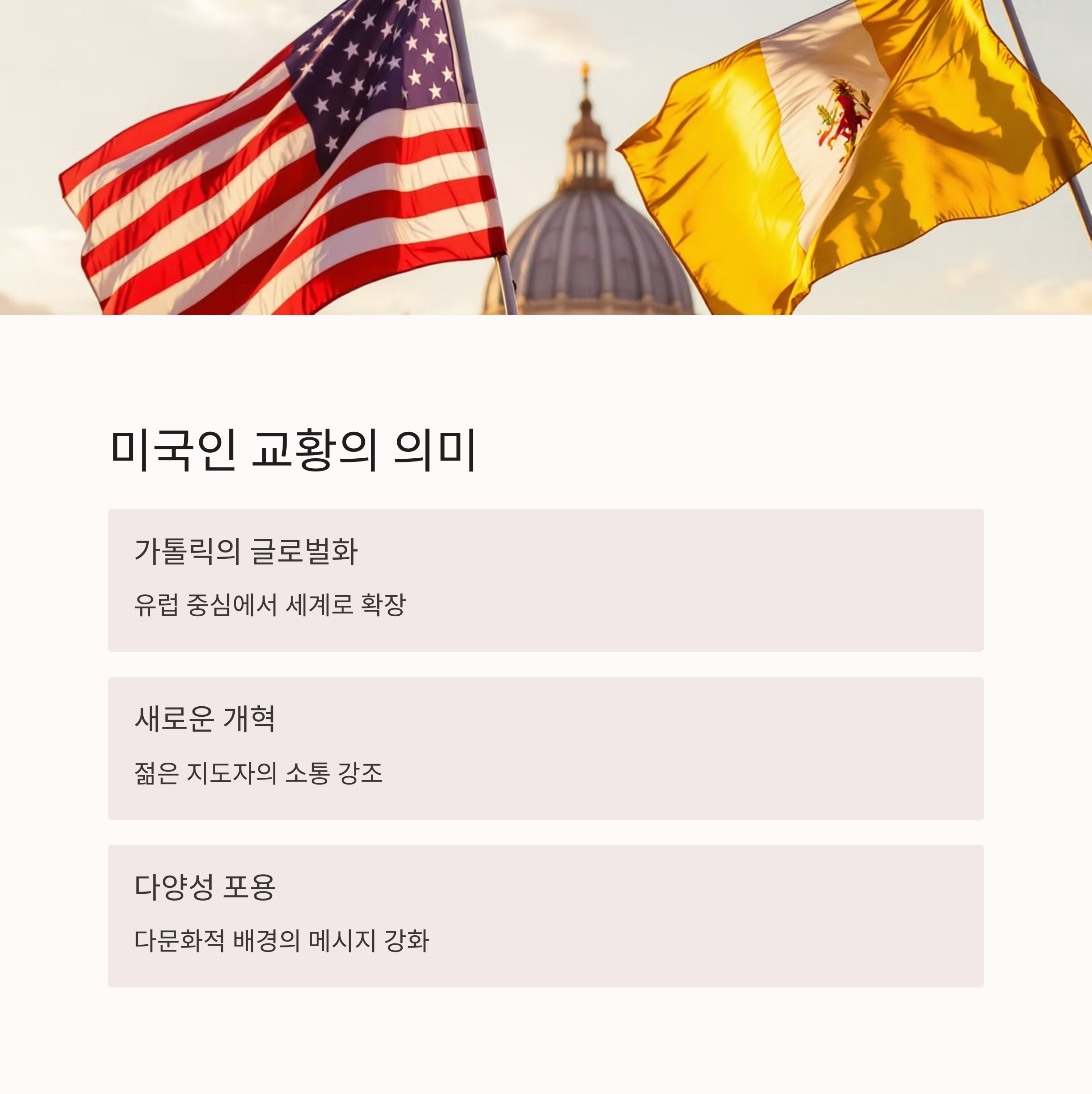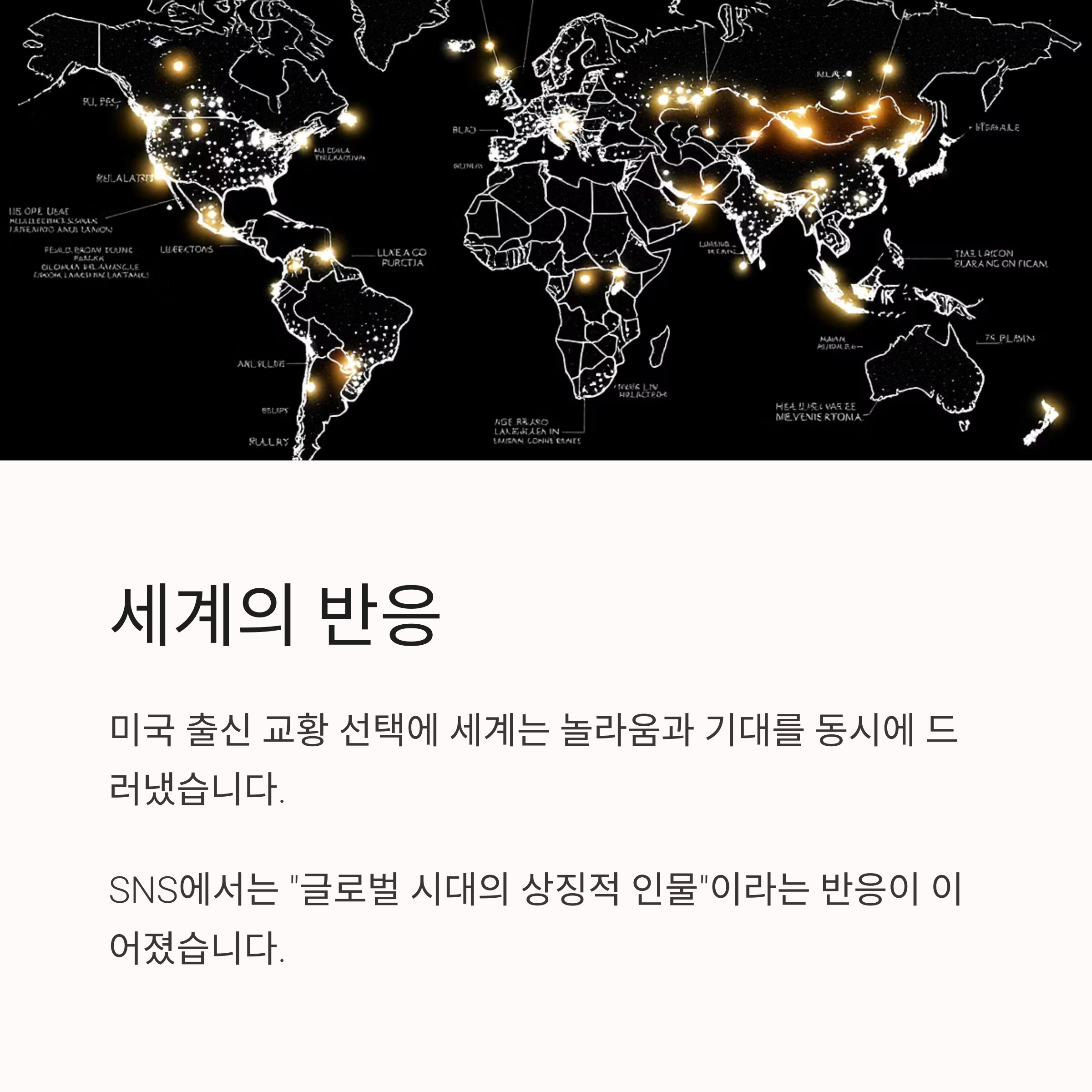 | 첫 미국인 교황 | 가톨릭의 글로벌화를 상징 |