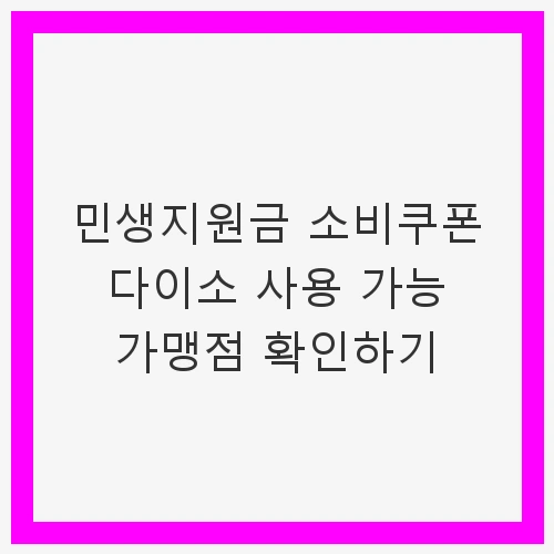최근 정부의 민생지원금 정책에 따라 많은 소비자들이 소상공인 지원을 위해 특정 매장에서 지원금을 활용할 수 있게 되었습니다. 특히, 저렴한 생활용품을 제공하는 다이소는 많은 이들이 주목하는 매장 중 하나입니다. 하지만 모든 다이소 매장에서 민생지원금을 사용할 수 있는 것은 아니므로, 그 사용 가능 여부를 정확히 파악하는 것이 중요합니다. 이번 글에서는 민생지원금 소비쿠폰을 다이소에서 사용하기 위한 가맹점 확인 방법과 유의사항에 대해 자세히 알아보겠습니다.