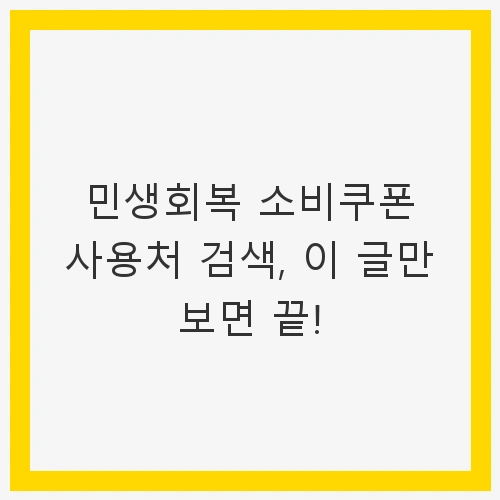 민생회복 소비쿠폰은 소상공인과 자영업자에게 꼭 필요한 지원입니다. 하지만 쿠폰을 제대로 활용하지 않으면 그 가치를 잃게 됩니다. 그러므로 사용처를 미리 체크하고, 사용 가능한 매장을 찾아보는 것이 중요합니다. 이 글을 통해 사용처를 간편하게 확인하고, 여러분이 가진 소비쿠폰의 가치를 극대화할 수 있도록 도와드릴게요.