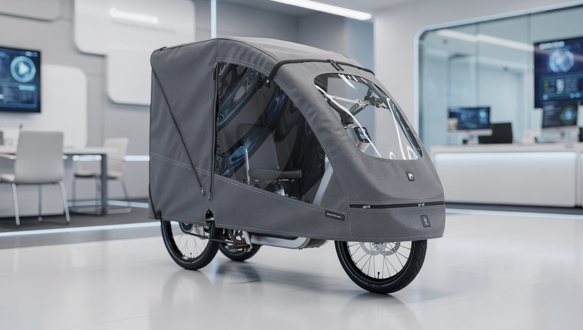 - 상단 고정: 커버의 윗부분을 트라이크 핸들 뒤쪽으로 넘겨 차양막 전체를 씌워줍니다.