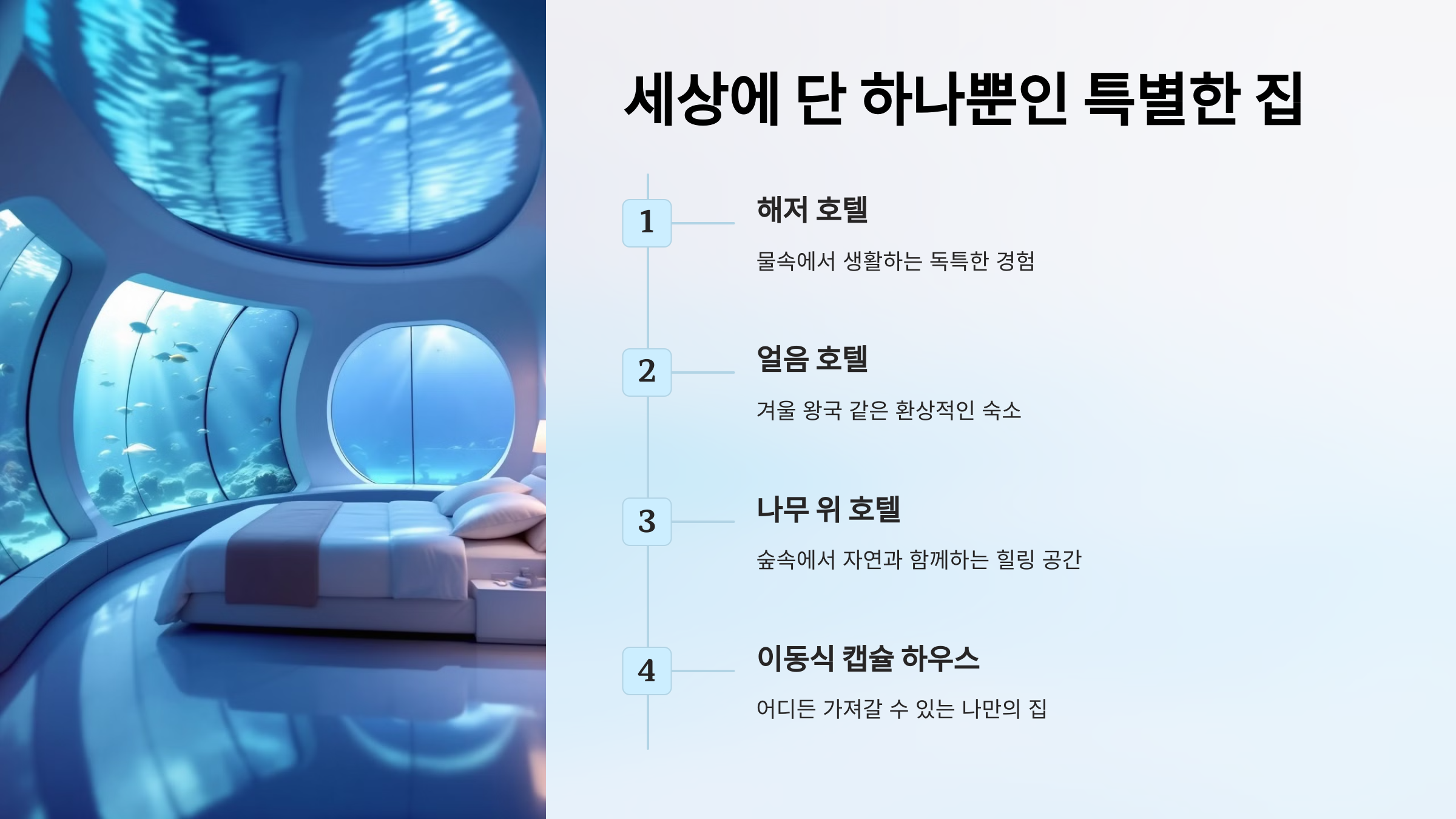 - 해저 호텔 – 물속에서 생활하는 독특한 경험