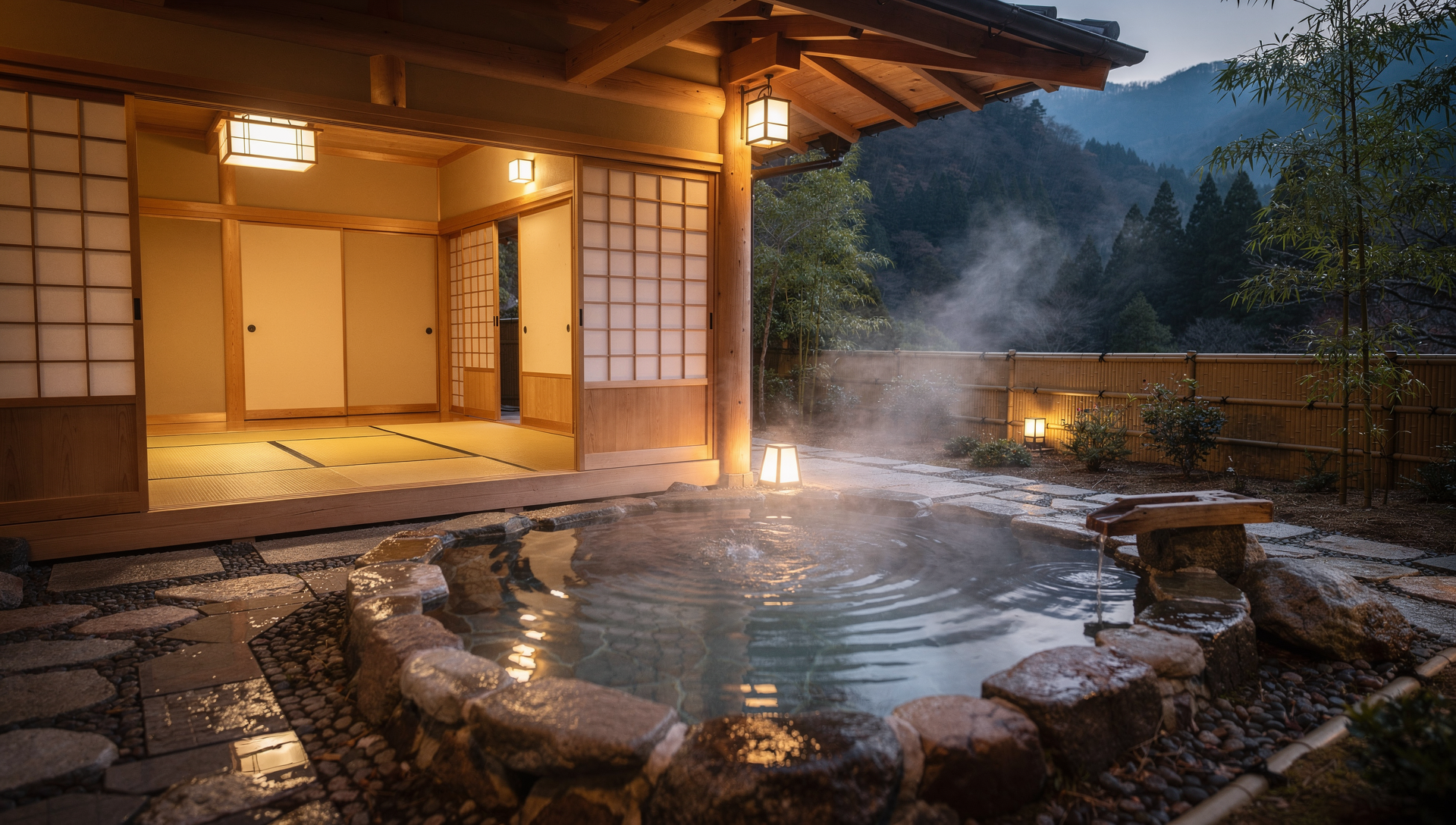 피부에 상처가 있거나 면역력이 급격히 떨어졌을 때는 대중탕 이용을 피하고, 객실 내에 마련된 개인용 노천탕(개별탕)이 있는 료칸을 이용하는 것이 가장 좋습니다.