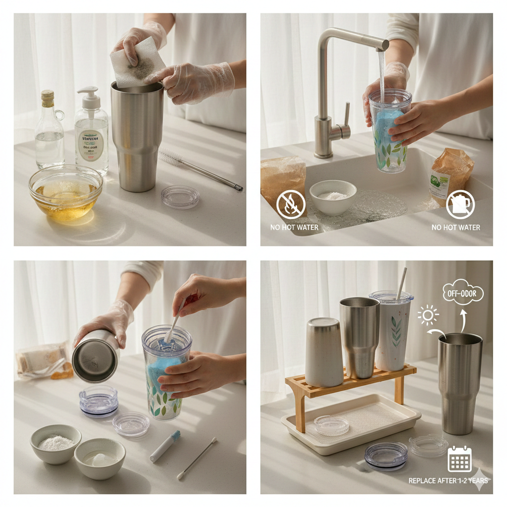 ✔️ 정기적 교체: 스크래치, 악취, 손상 시 주저 없이 새 텀블러로!