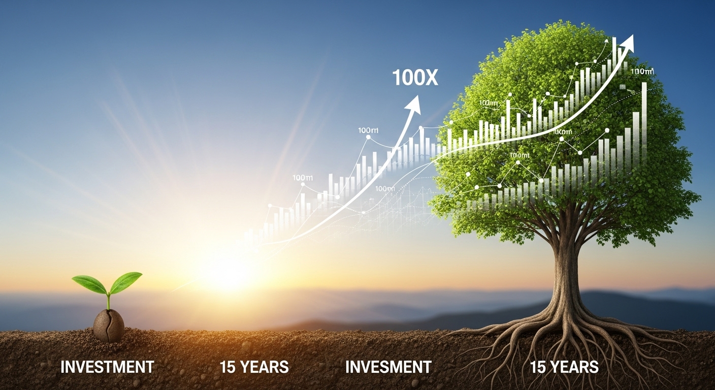 ✅ 15년간 100배 수익은 연 36% 이상의 복리 효과로, 끈기 있는 장기 투자의 정수를 보여줍니다.
