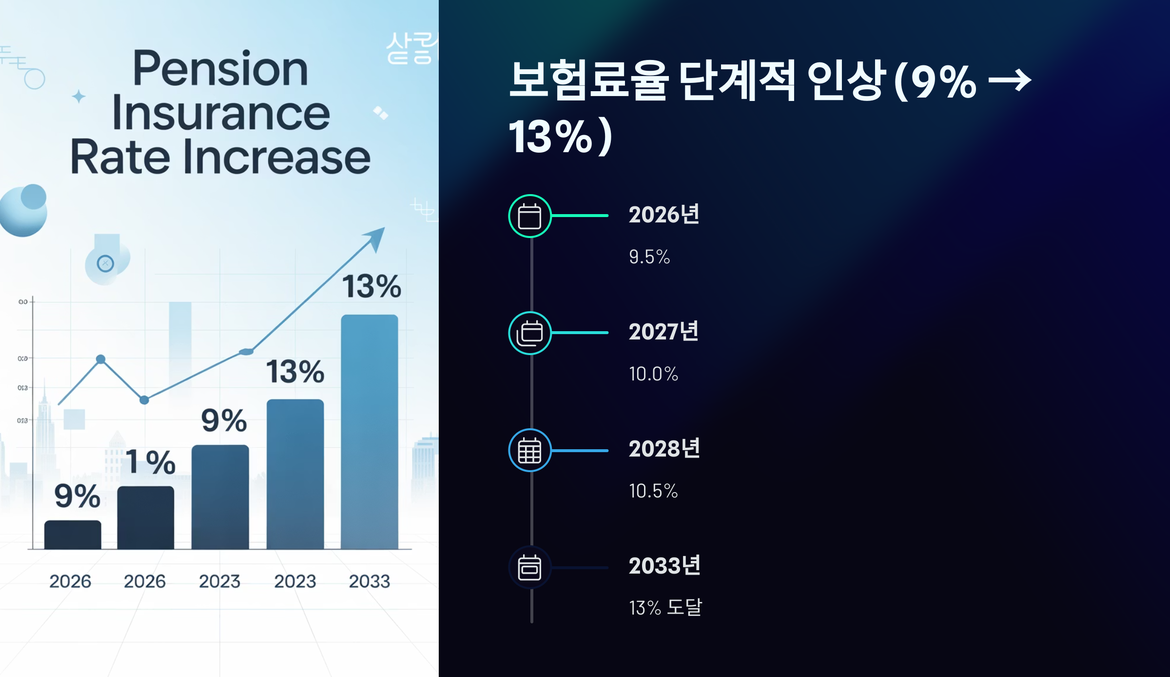 ✅ 국민연금 보험료율 9% → 13% 단계적 인상