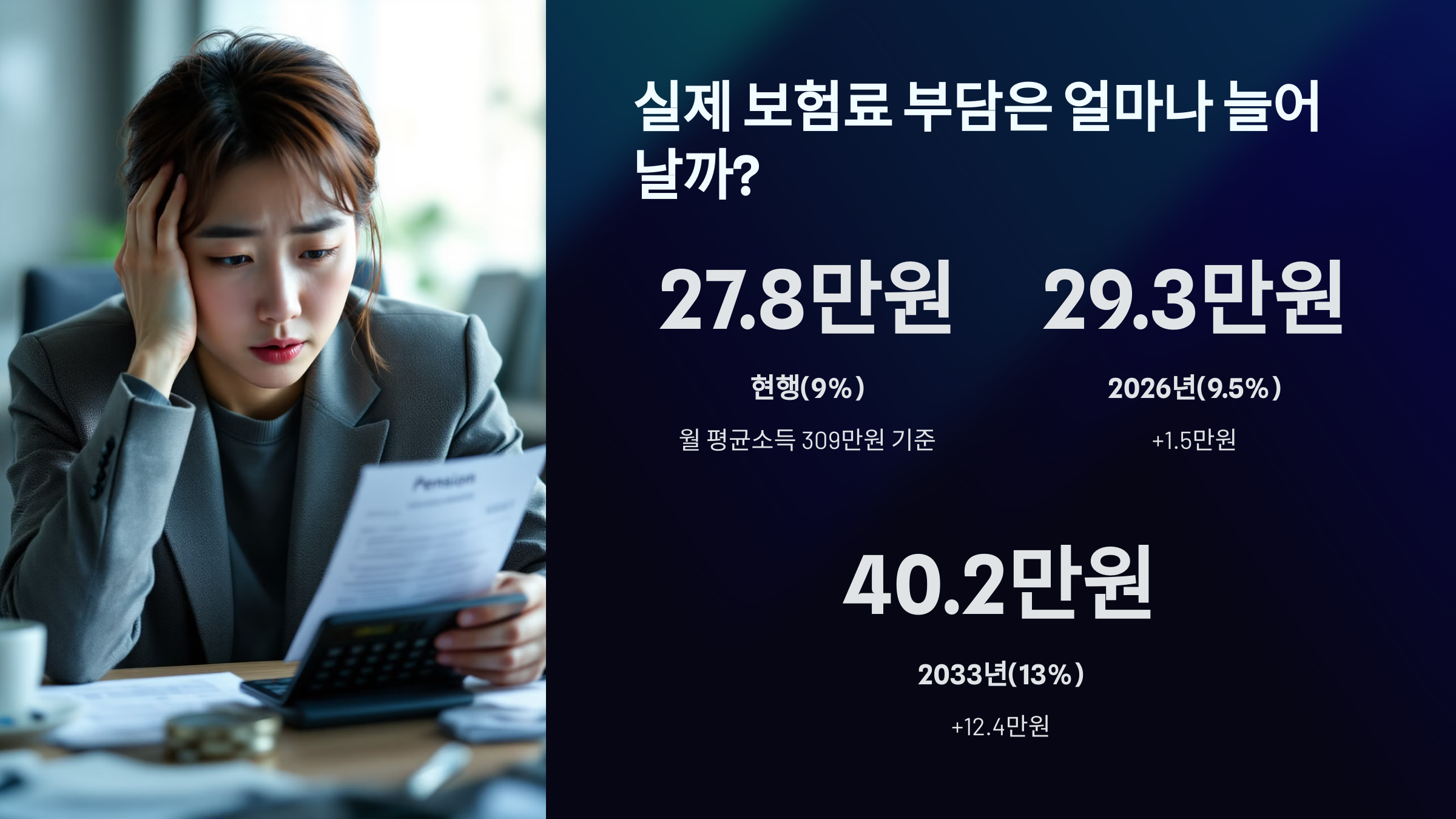 예시로 월 소득이 309만 원인 경우, 2025년엔 27.8만 원을 내지만 2033년엔 40.2만 원까지 오릅니다.