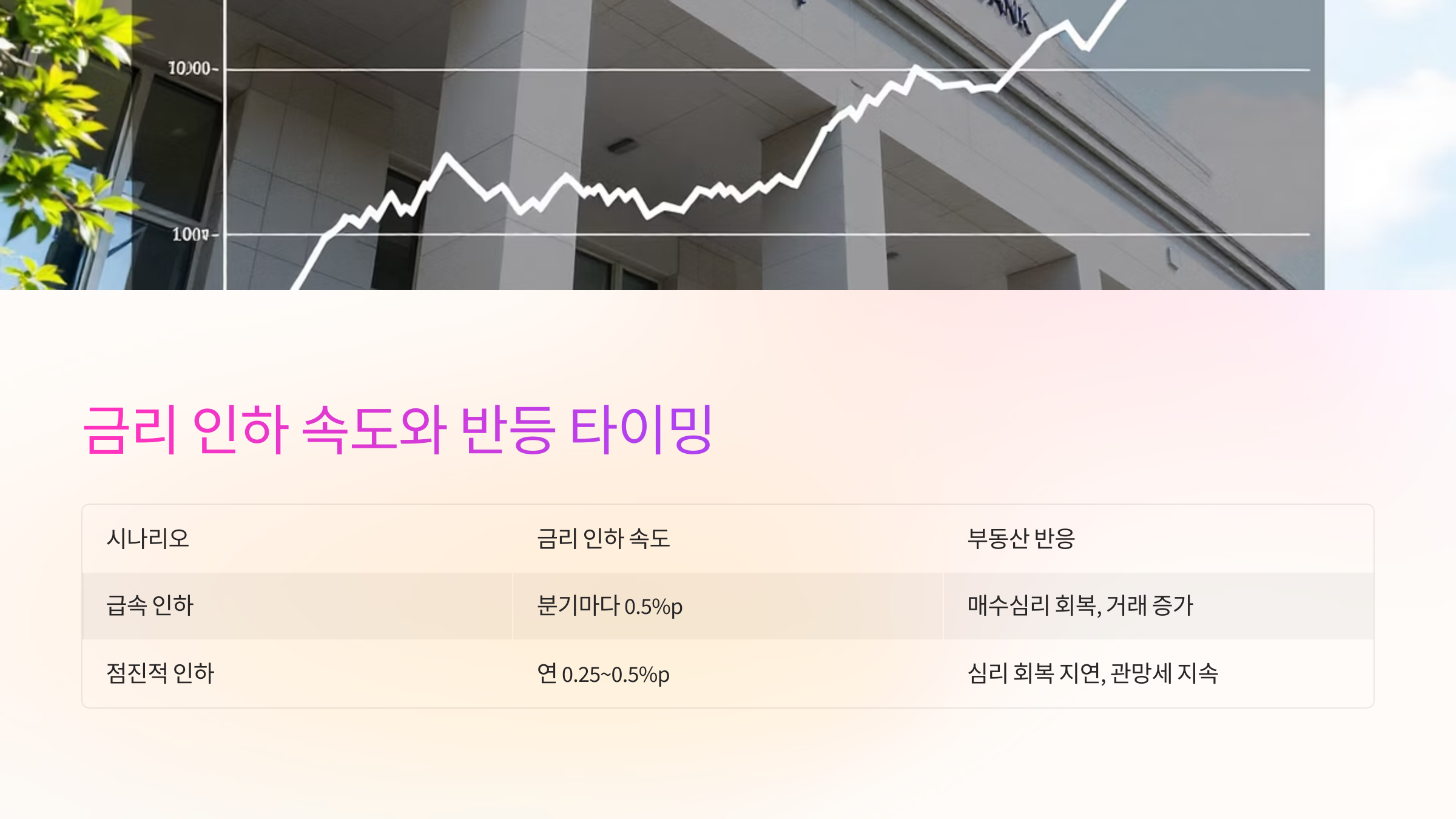 | 시나리오 | 금리 인하 속도 | 부동산 반응 |