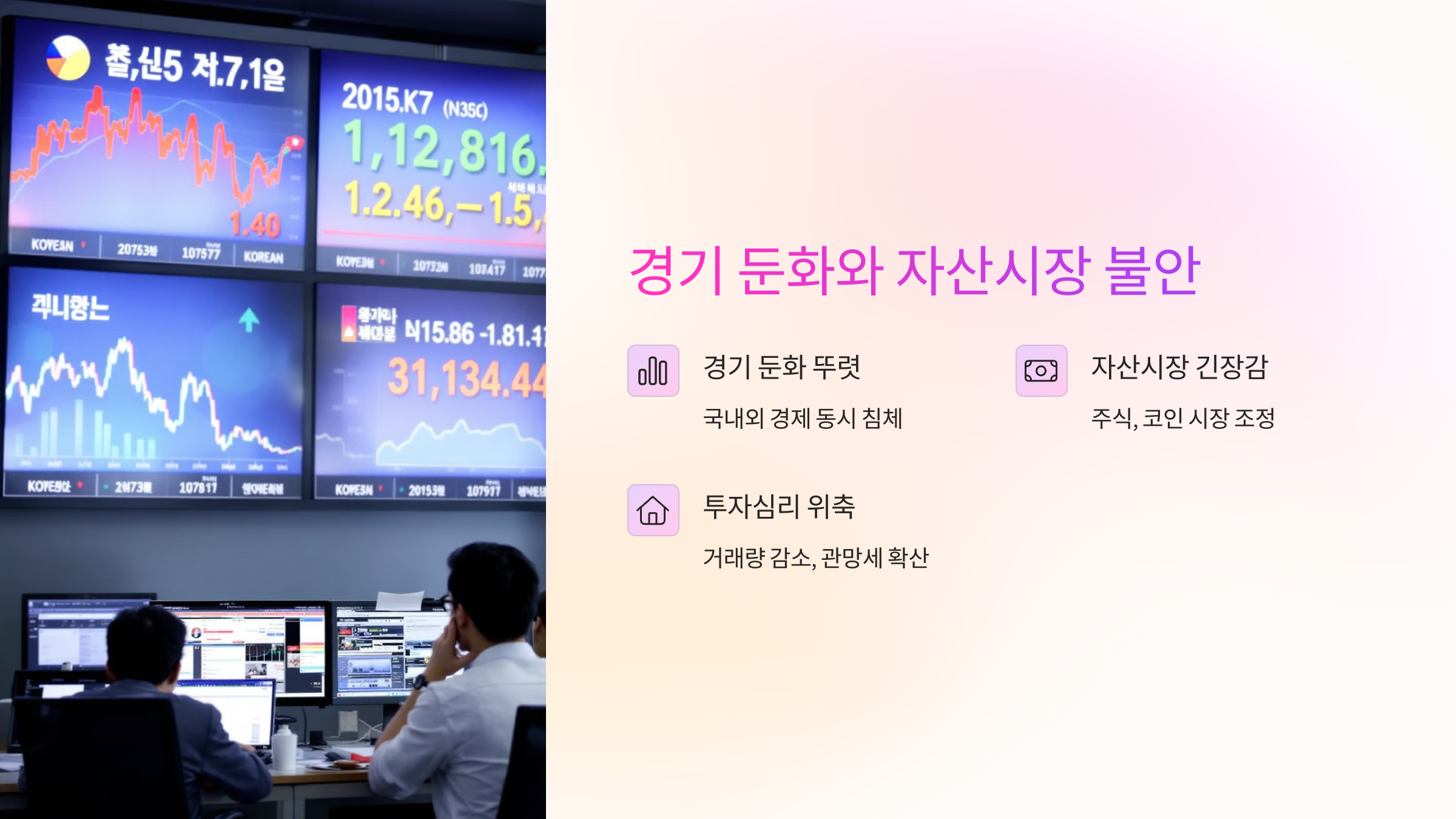 2025년 들어서면서 가장 뚜렷하게 느껴지는 건 ‘경기 둔화’입니다. 국내외 경제가 동시에 식어가고 있고, 자산시장 전반에 긴장감이 감돌고 있어요. 특히 주식이나 코인 시장의 조정이 이어지면서 ‘돈의 흐름’이 멈춘 상태죠. 부동산도 예외는 아니에요. 이런 경기 둔화는 투자심리를 위축시키고, 매수자들의 관망세를 불러오면서 거래량이 뚝 떨어졌습니다. 예전에는 조금 비싸도 일단 사놓으면 오른다는 믿음이 있었는데, 지금은 ‘이 가격이 적절한가?’라는 의문이 더 커졌어요. 감정이 아닌 숫자로만 판단하려는 분위기입니다.