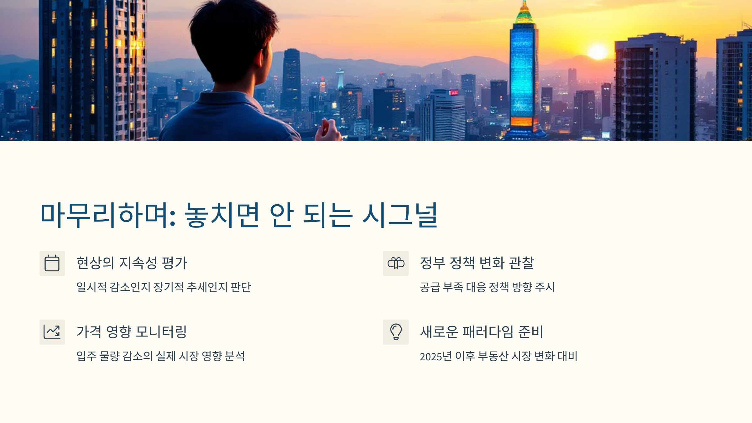 2025년은 수도권 부동산 시장에서 분기점이 될 가능성이 큽니다. 입주 물량 감소는 단순한 숫자 이상의 의미를 가지며, 투자자와 실수요자 모두에게 명확한 시그널이 될 수 있습니다. 저도 글을 정리하면서 이게 단순한 뉴스가 아니라 우리 삶과 직결된 문제라는 걸 다시금 느꼈어요. 여러분도 이 변화 속에서 기회를 찾고, 현명한 선택을 하시길 바랍니다. 그리고 혹시 궁금한 점이 있다면 댓글로 함께 이야기 나눠봐요. 우리, 부동산 정보는 공유가 생명입니다 🙂