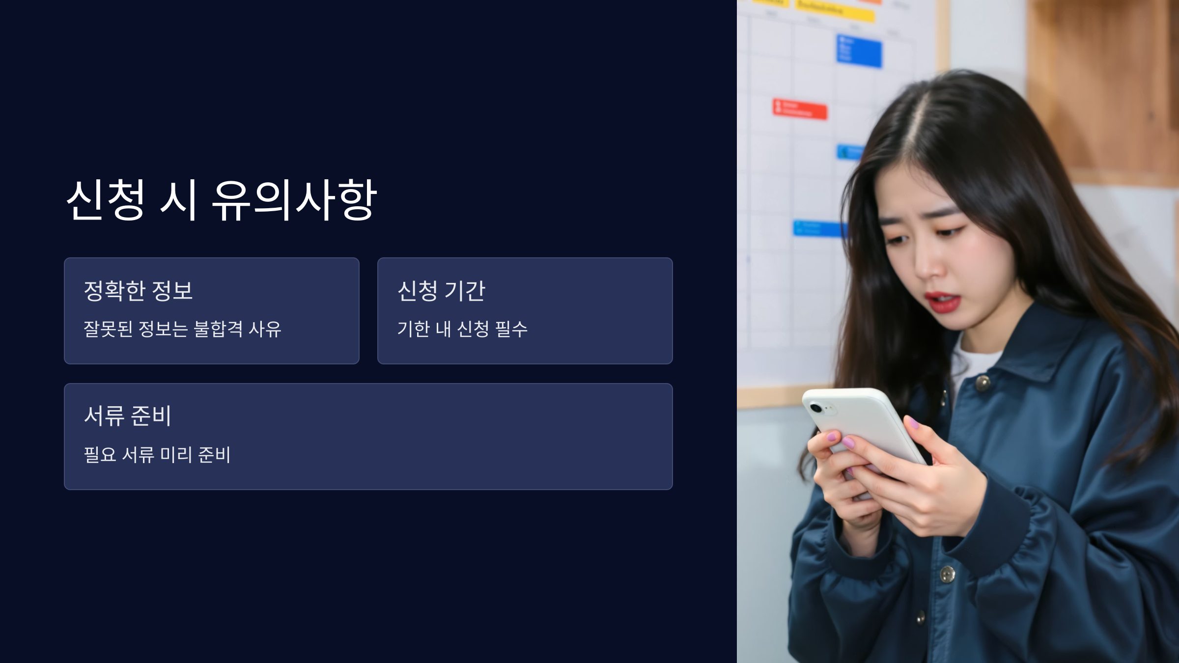 신청 과정에서 주의할 점은 다음과 같습니다: