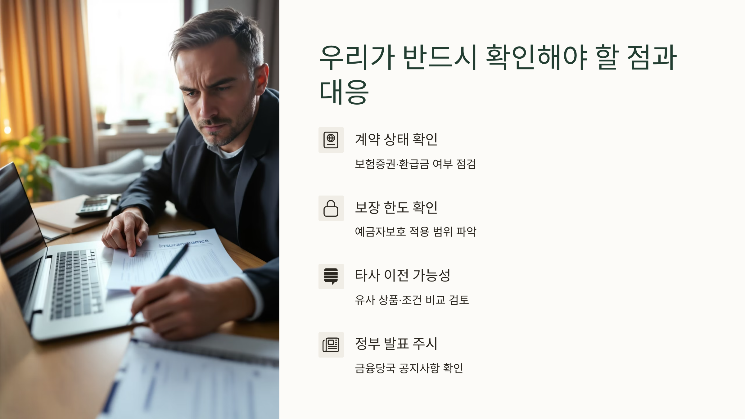 자신의 보험계약 조건을 다시 확인하고, 예보공사 홈페이지에서 관련 공지사항을 꾸준히 체크하는 것이 가장 중요합니다.